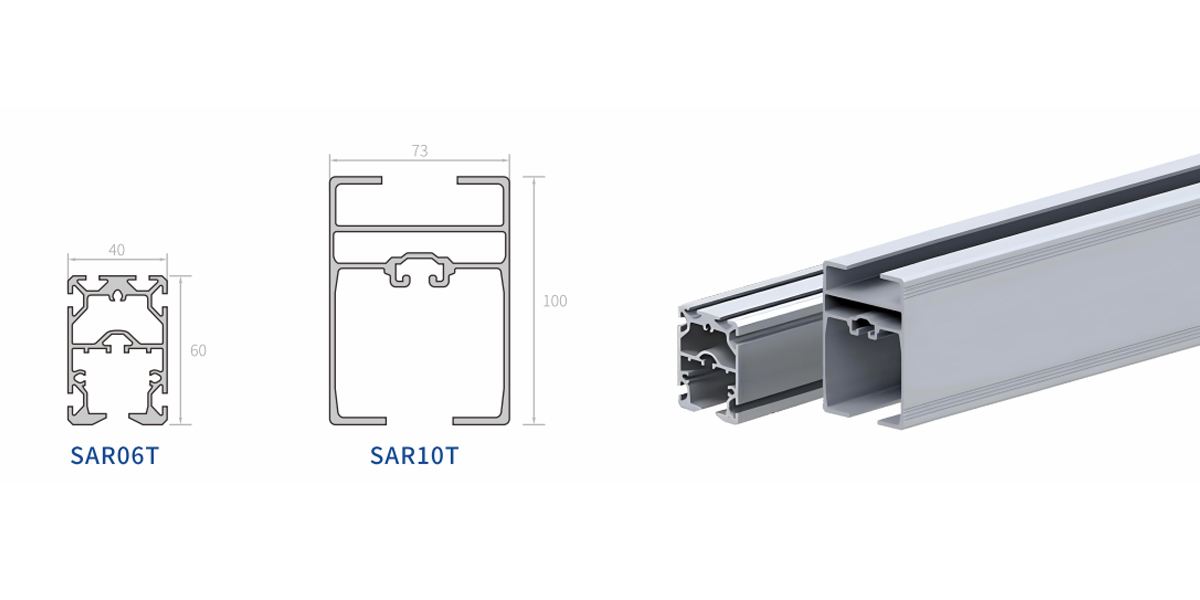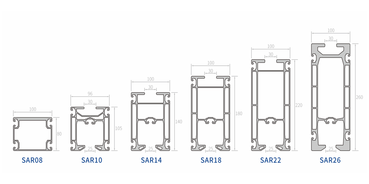 | SAR08 | Hliník, eloxovaný | 4,1 kg/m | 152 cm^4/202 cm^4 | 30cm^3/40cm^3 |