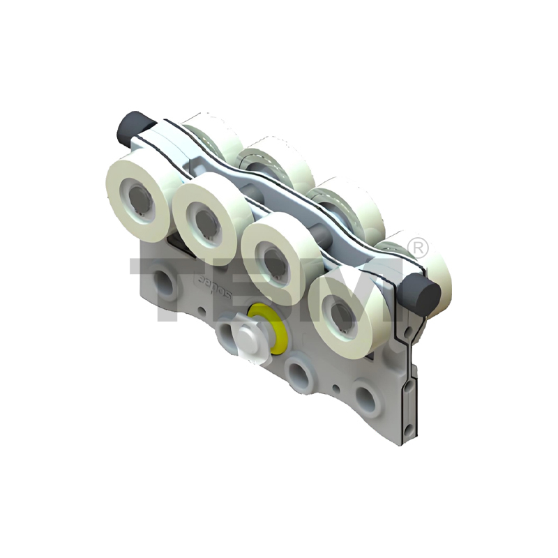 ■ Vozík je tlakově litý/kovaný z vysoce pevného nylonu odolného proti opotřebení pro hladké klouzání a snadné ovládání. Two rows of upper and lower rollers provide pry-resistant and anti-bias protection.